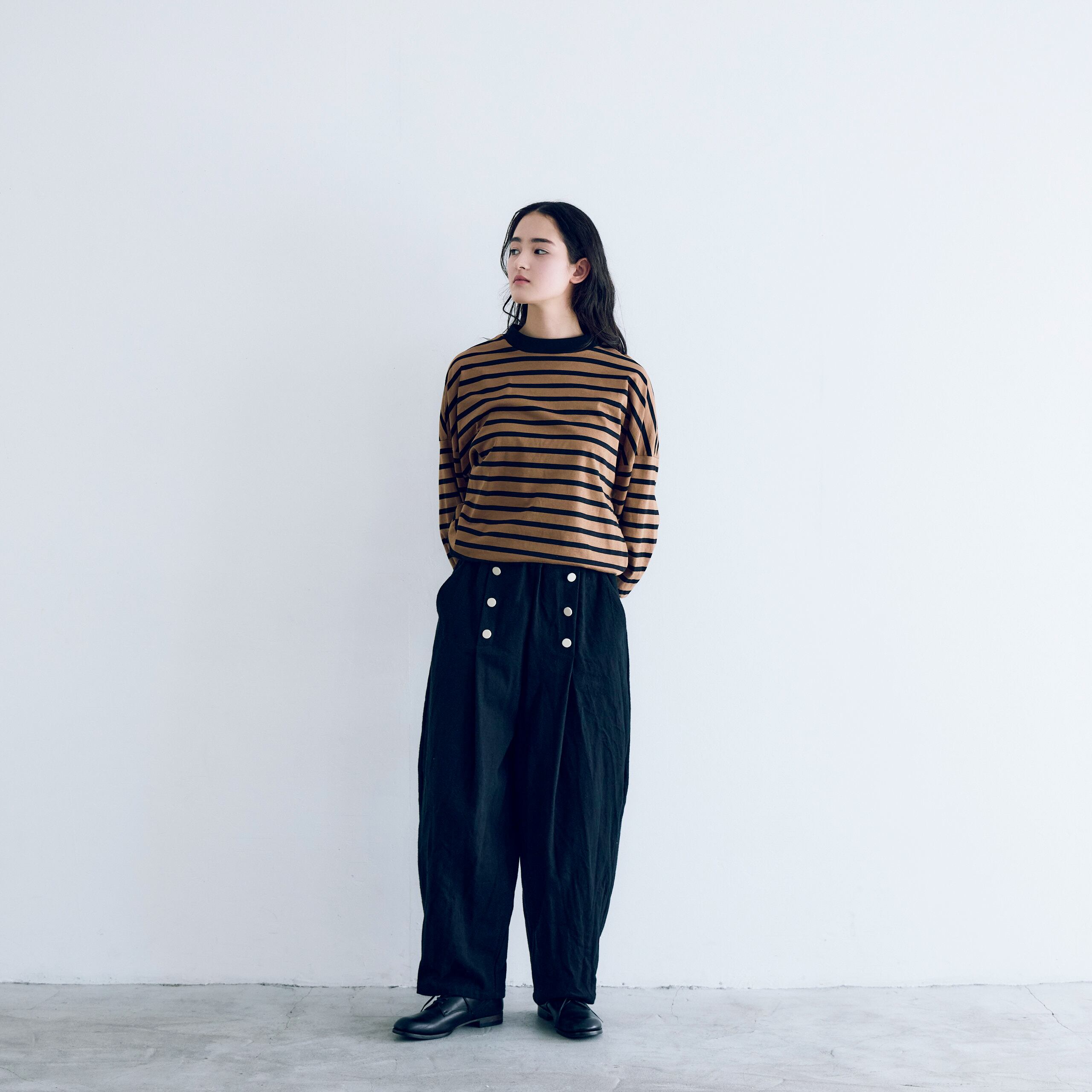 ブラウスやカットソーにも合わせやすく、着こなしをより楽しく豊かにしてくれるパンツです。