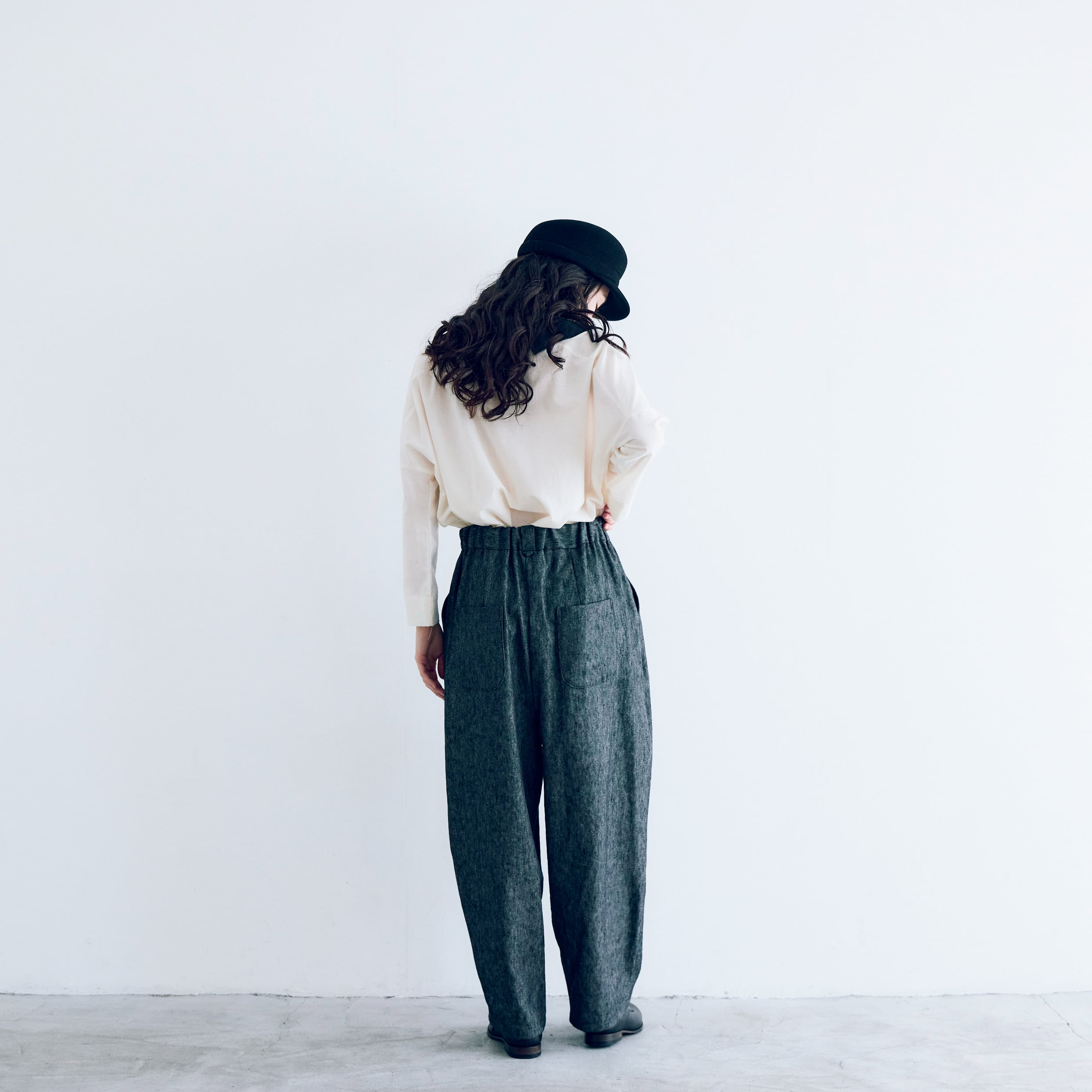 ブラウスやカットソーにも合わせやすく、着こなしをより楽しく豊かにしてくれるパンツです。