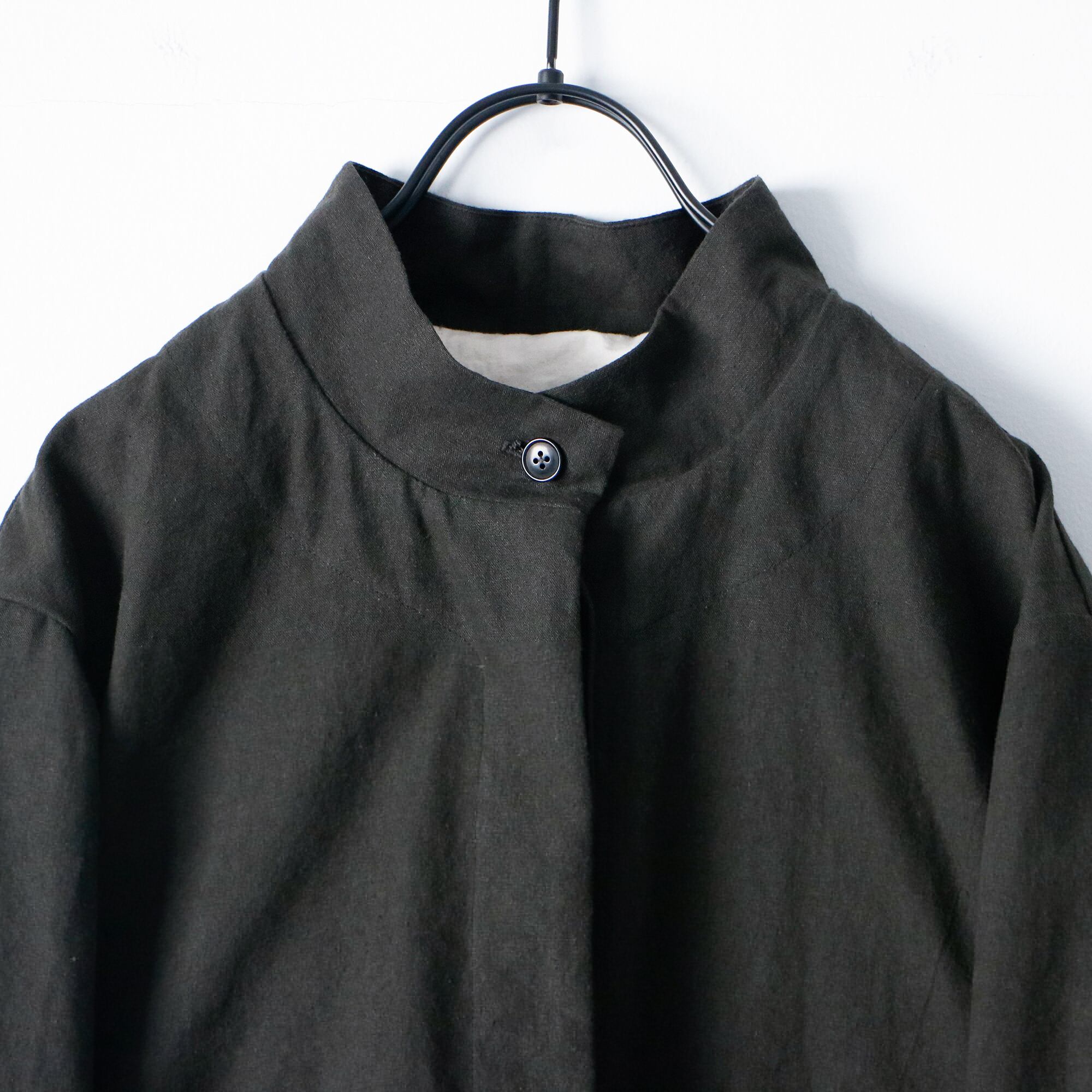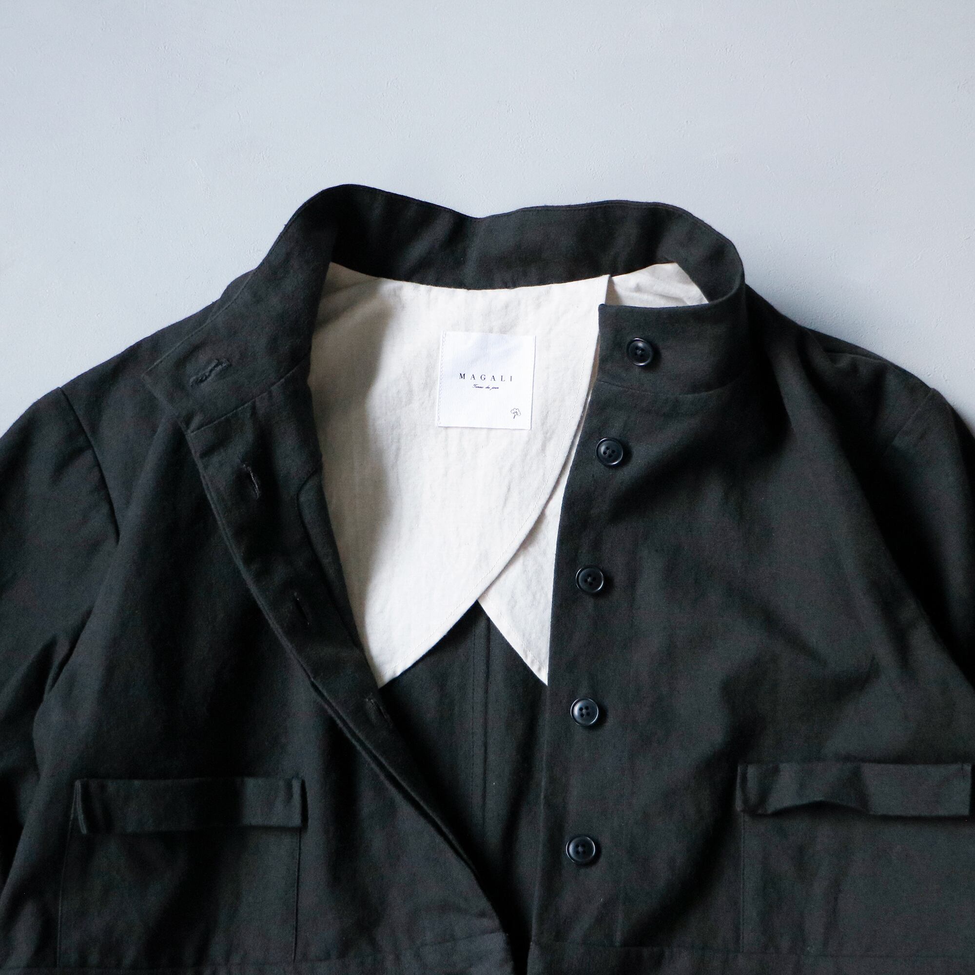 MAGALI コットンリネン.アンティークキャンバス.ハイネックジャケット ブラック