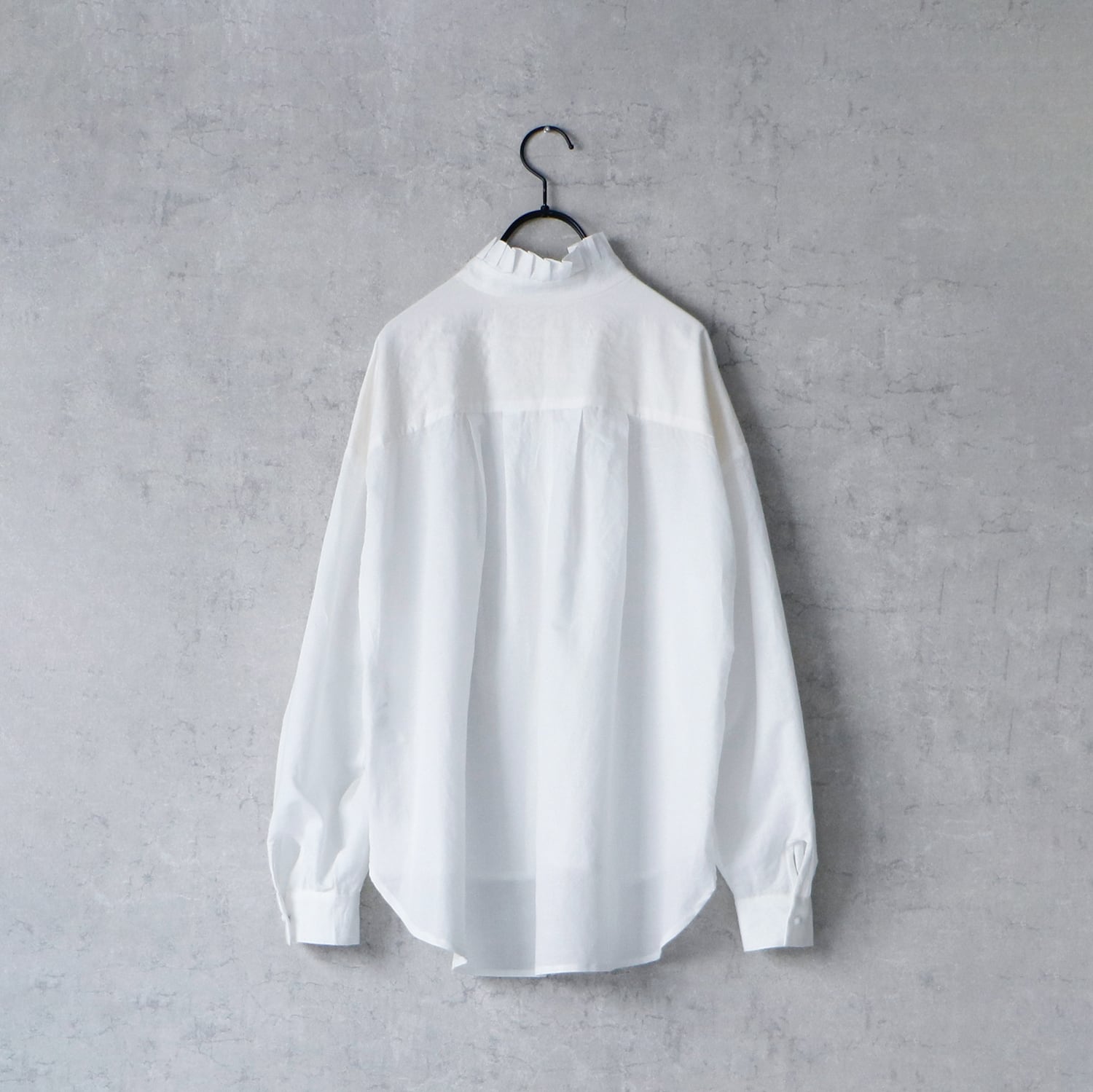 MAGALI コットンリネン.シャンブレー.ラッフルブラウス ホワイト