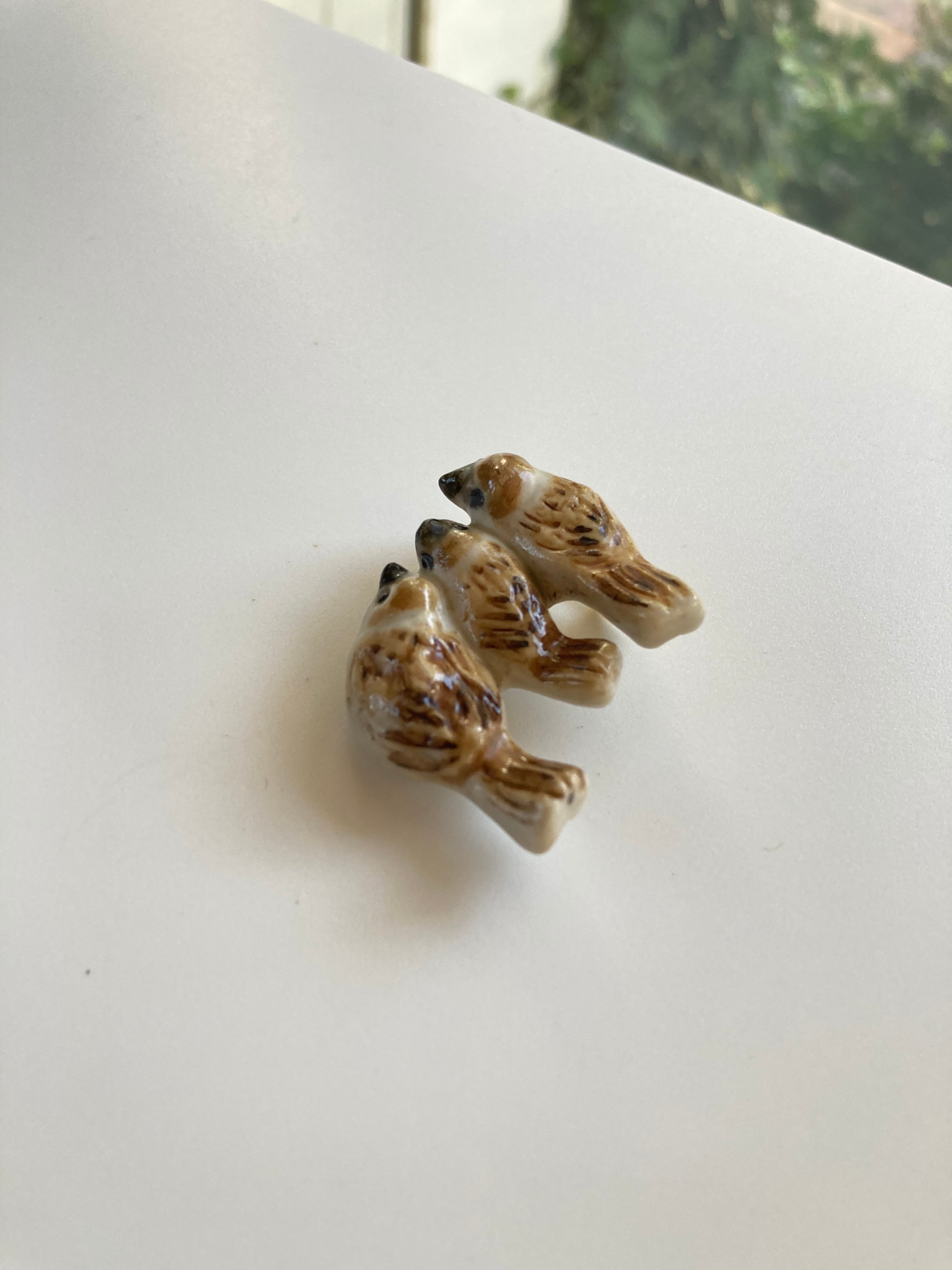 ブローチをはじめ、近年は陶板、器、人形など幅広く手がけ、日本各地のギャラリーやショップで個展を開いている。