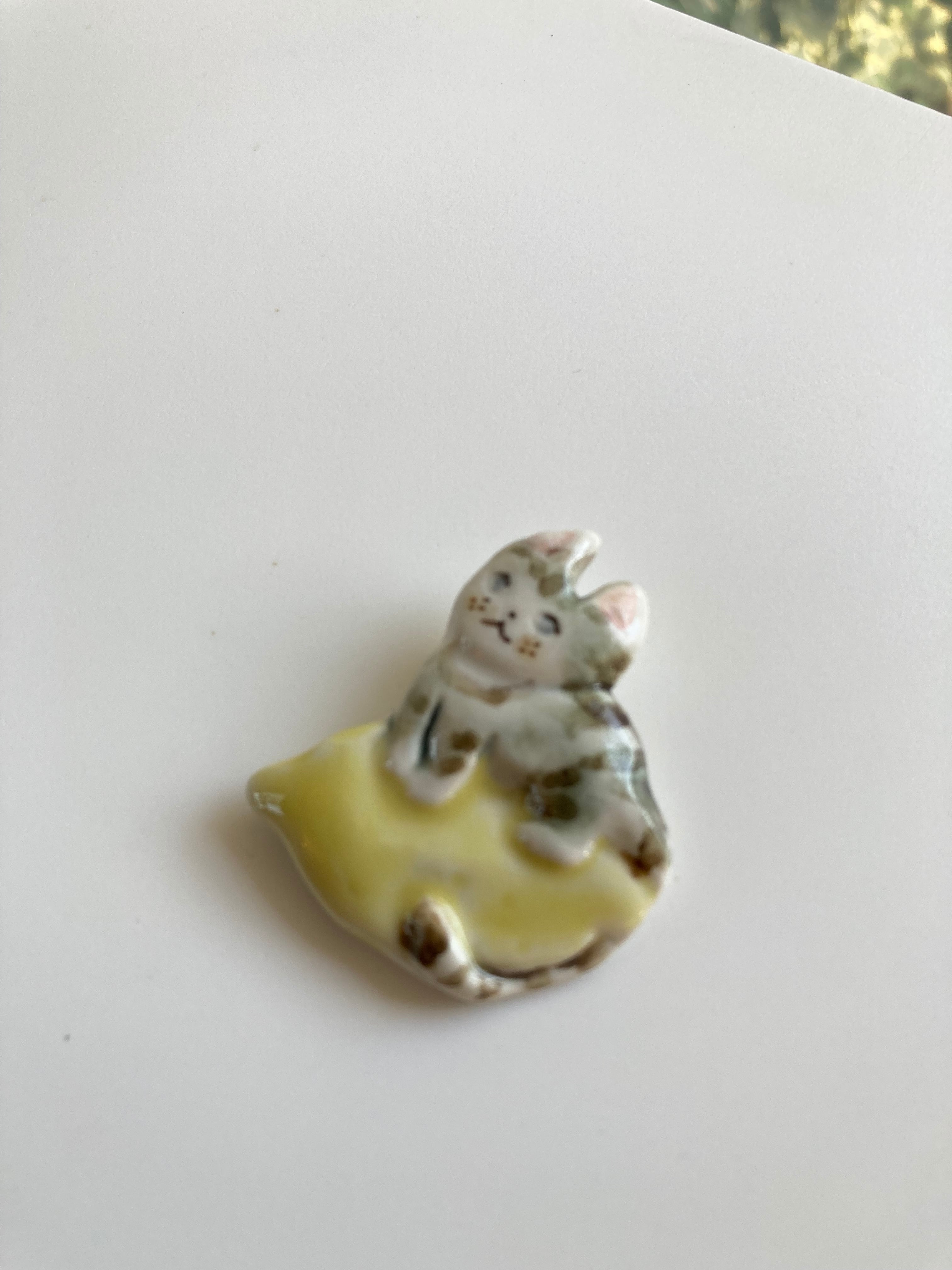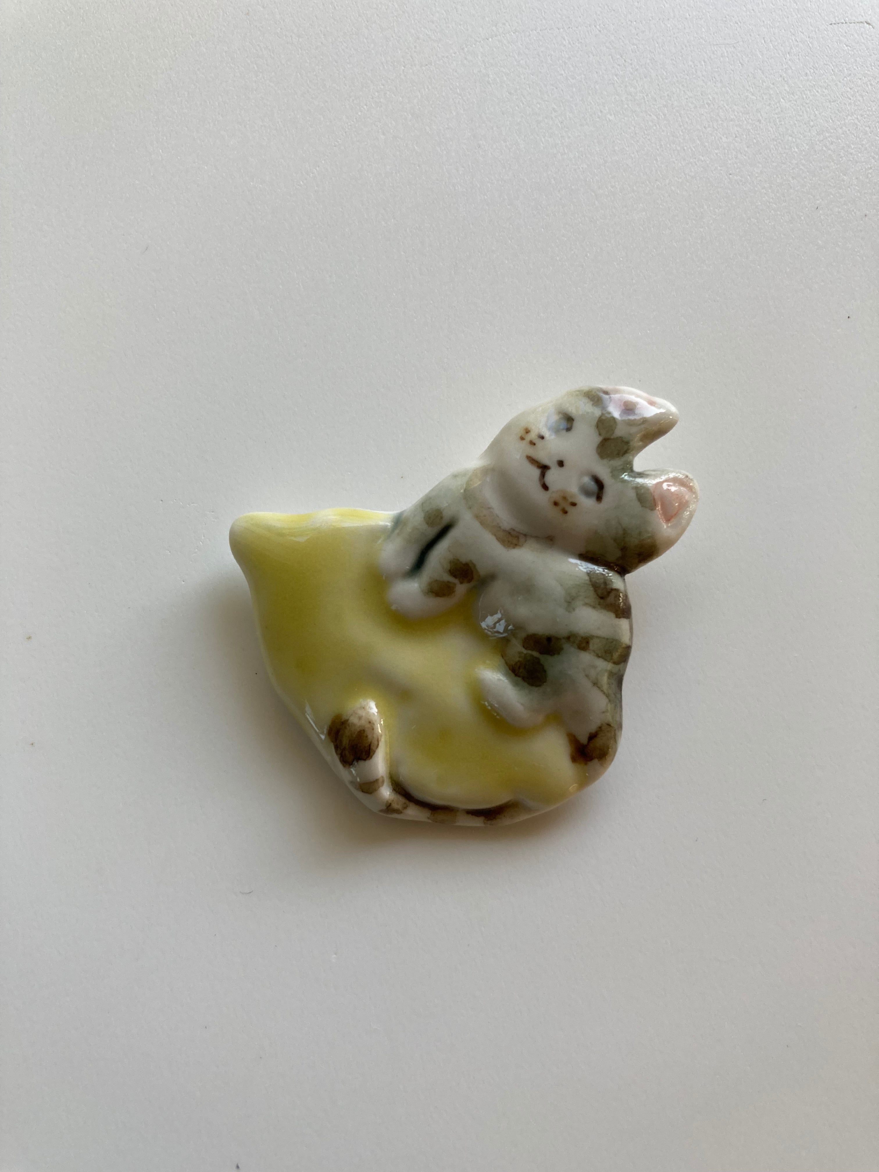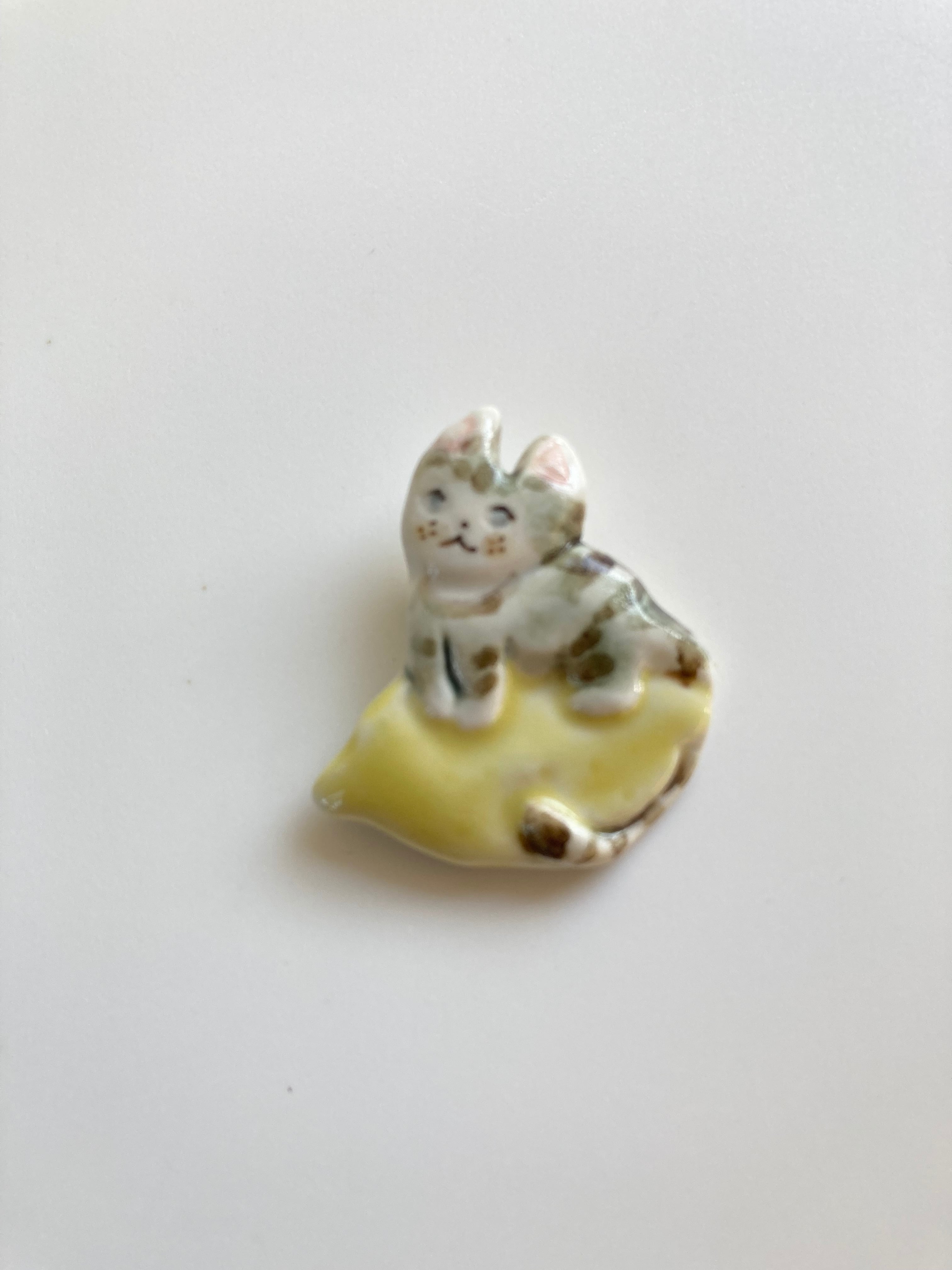 ブローチをはじめ、近年は陶板、器、人形など幅広く手がけ、日本各地のギャラリーやショップで個展を開いている。