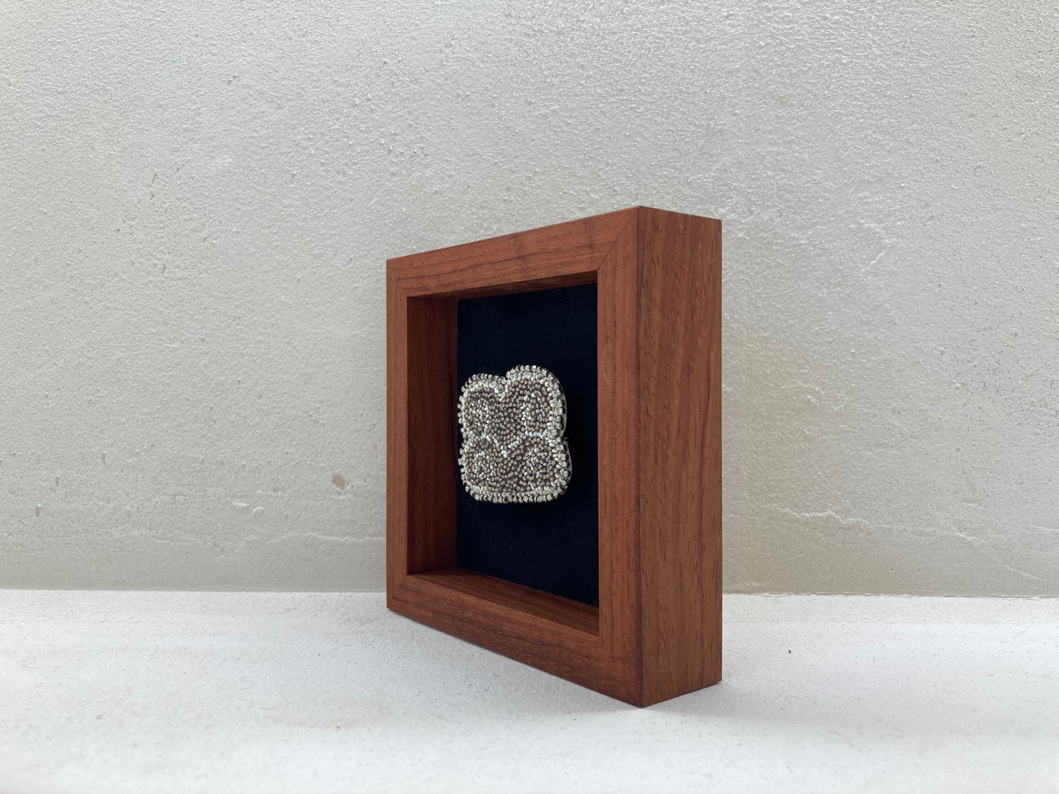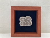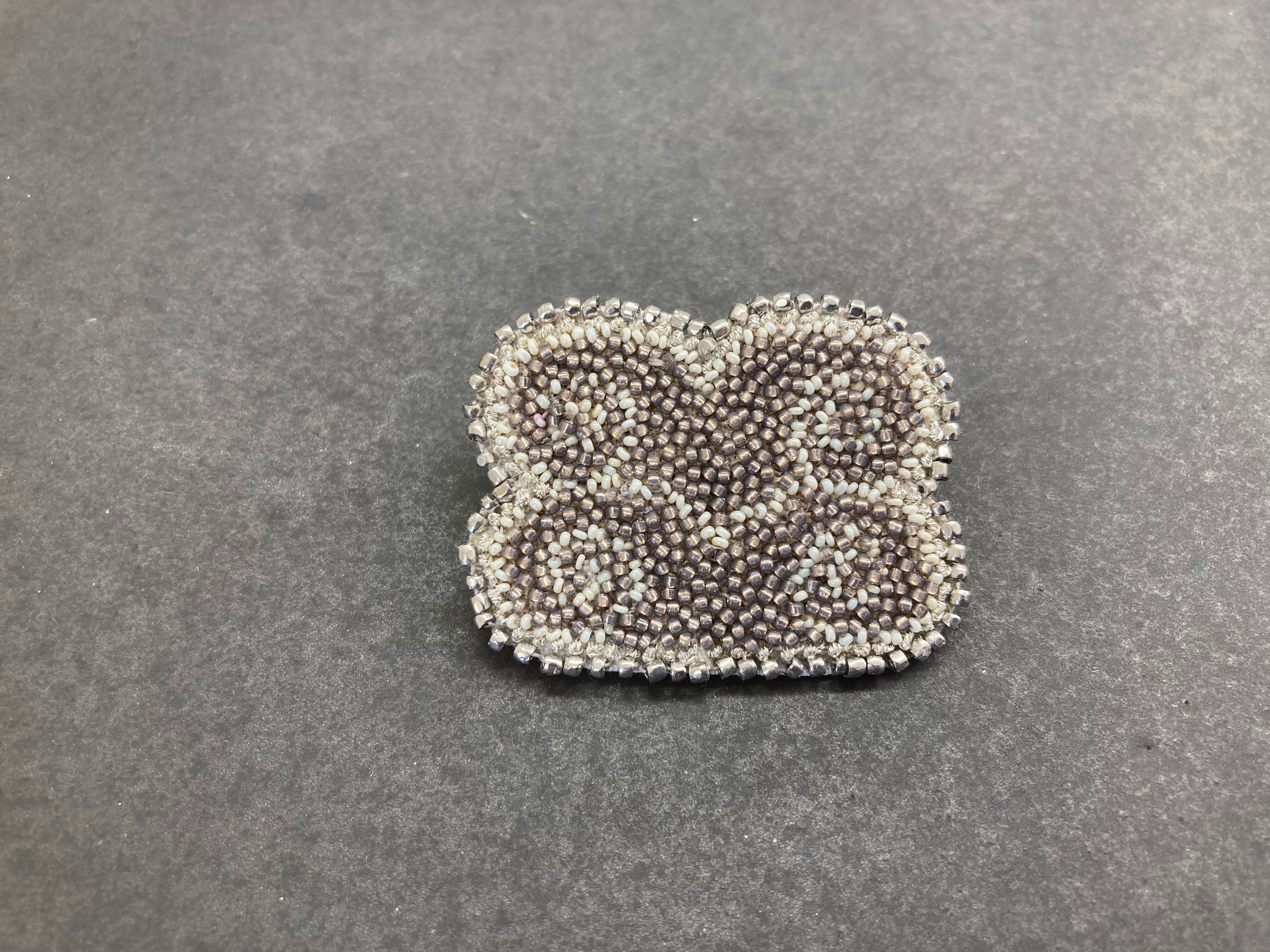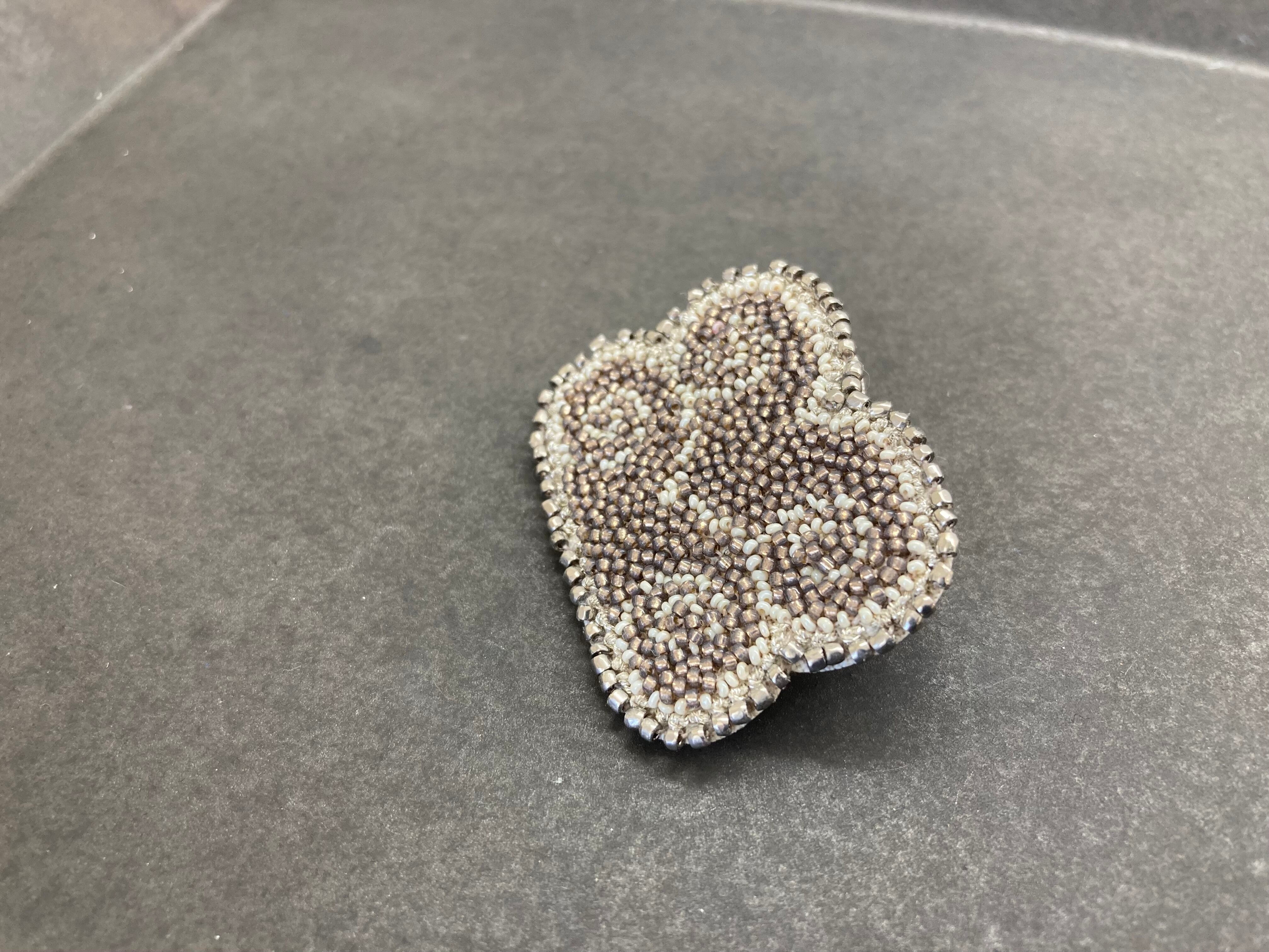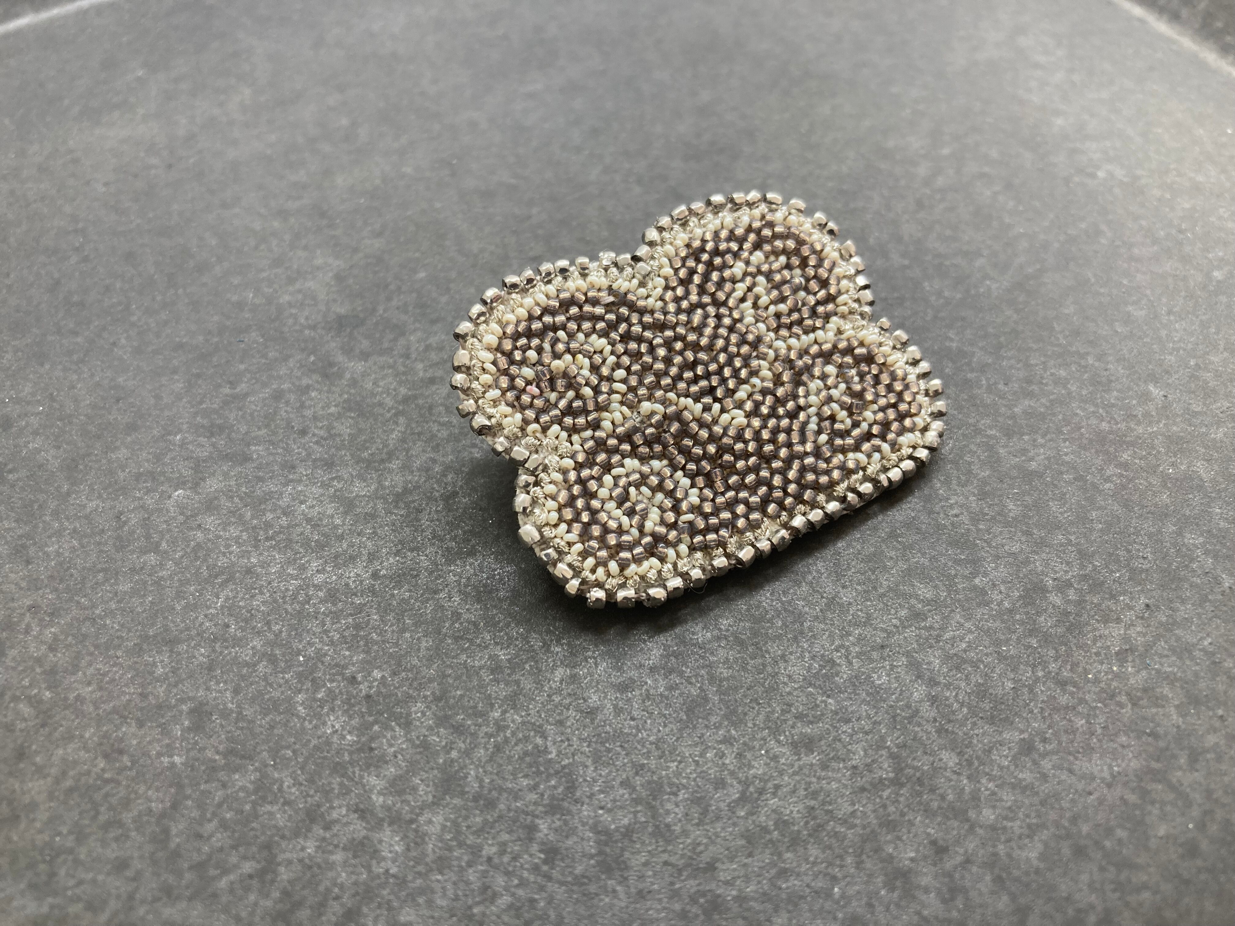 ひと針ひと針、ビーズを刺して作品に仕立てています。