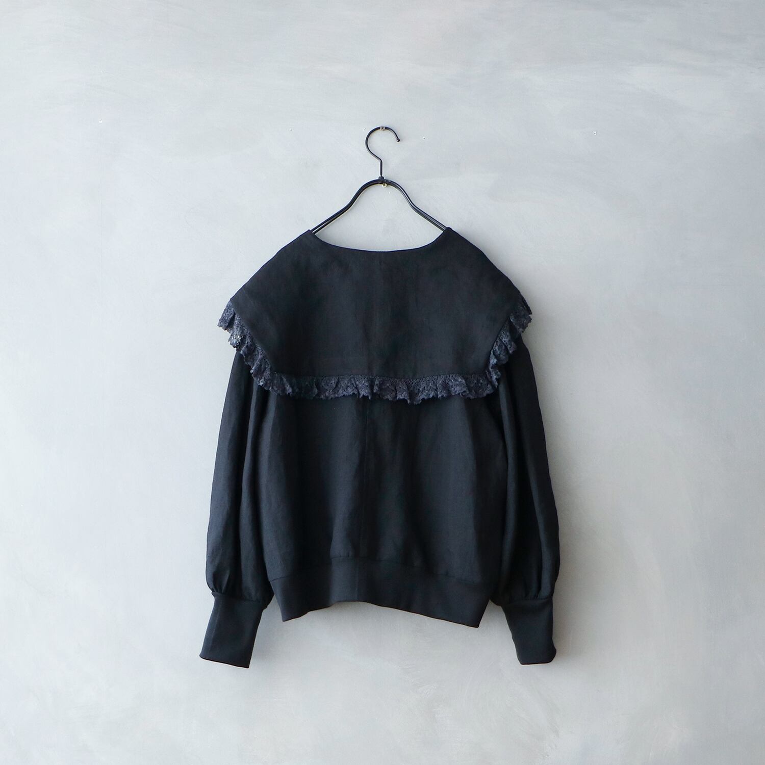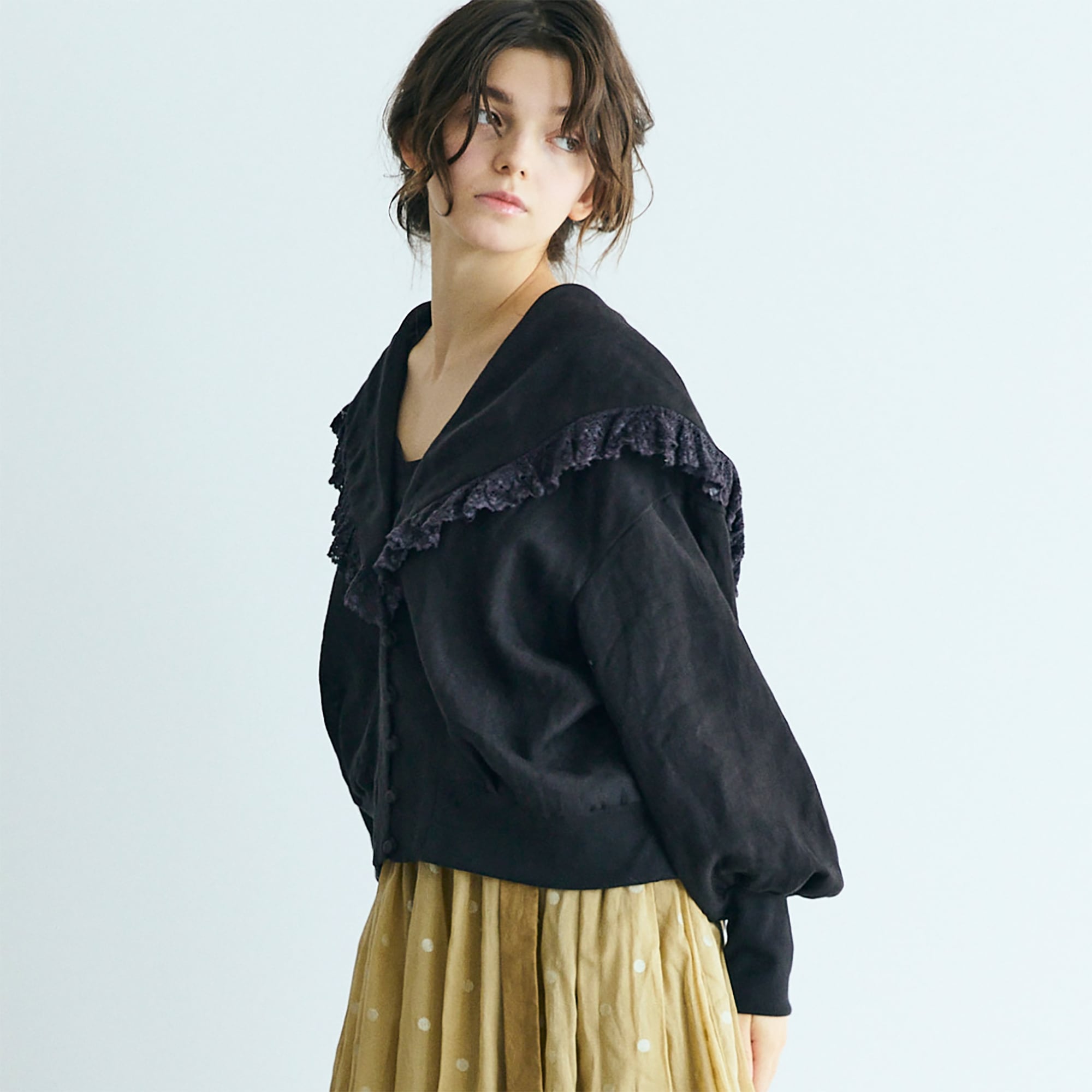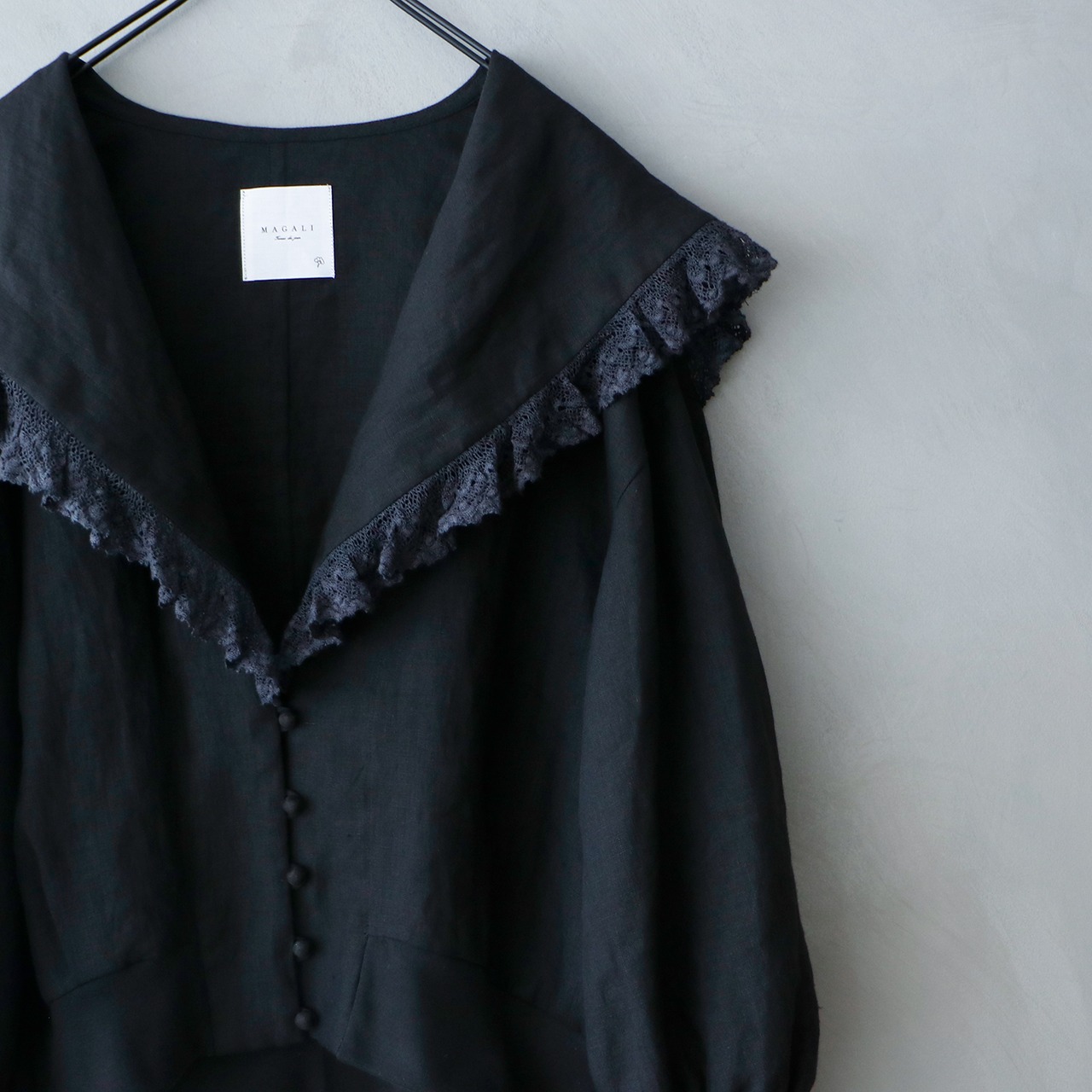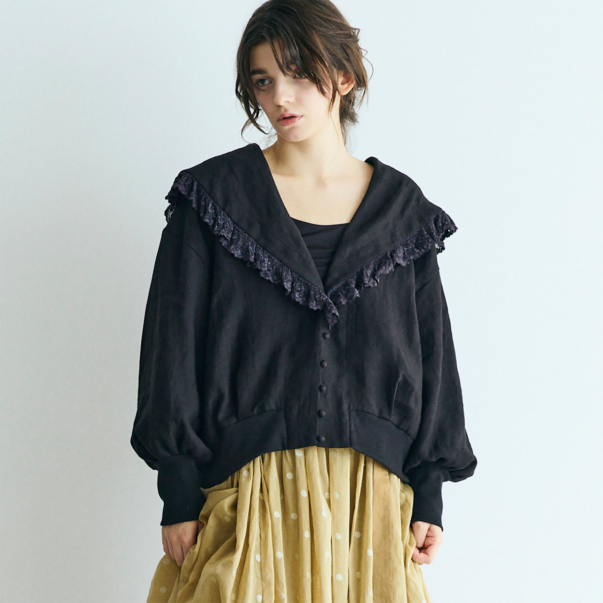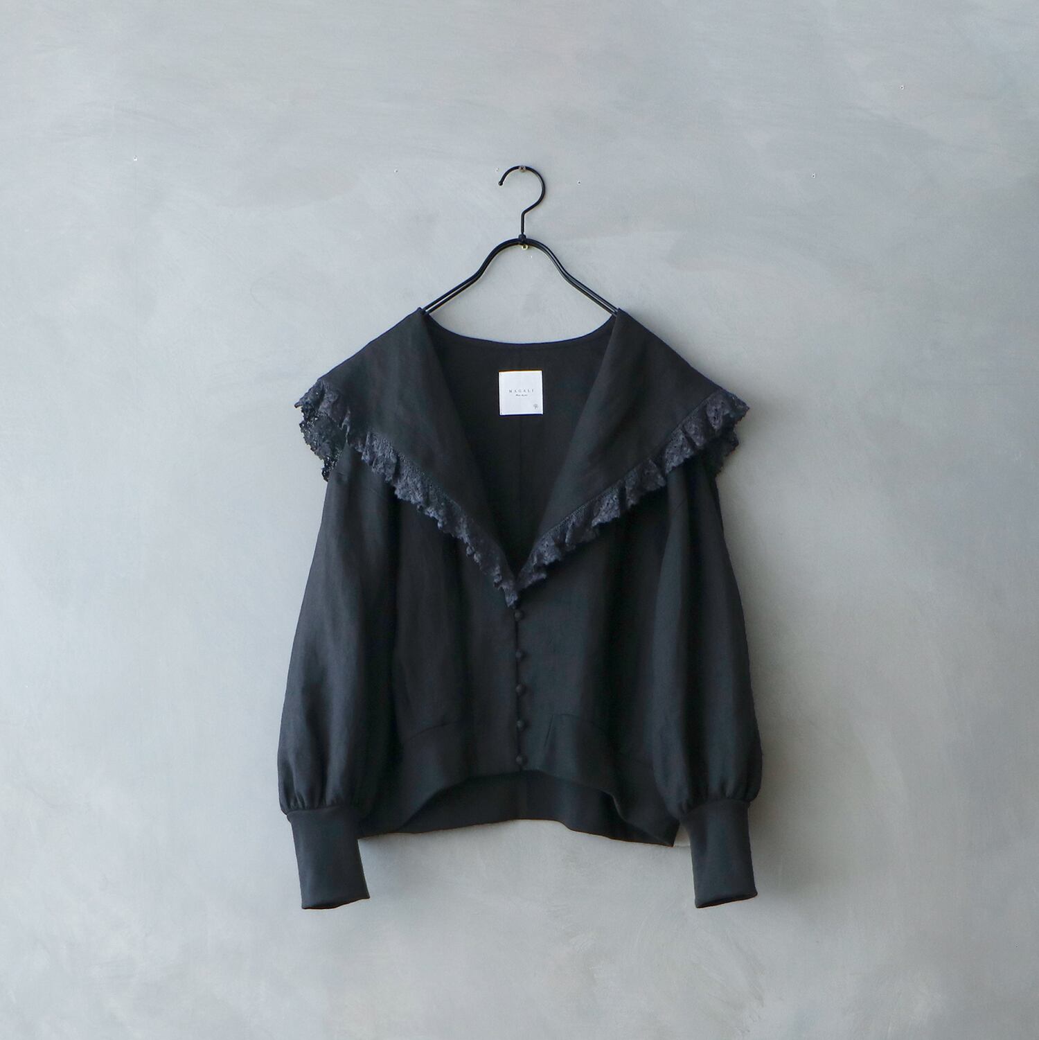MAGALI コルトレイクリネン.レース襟カーディガン ブラック