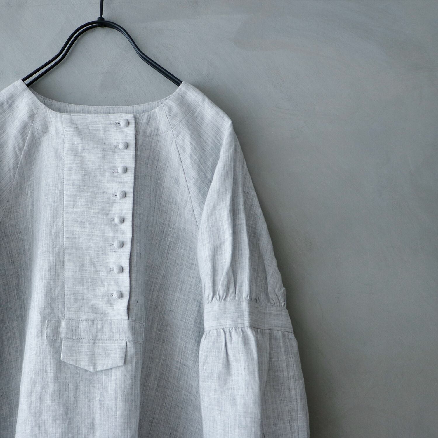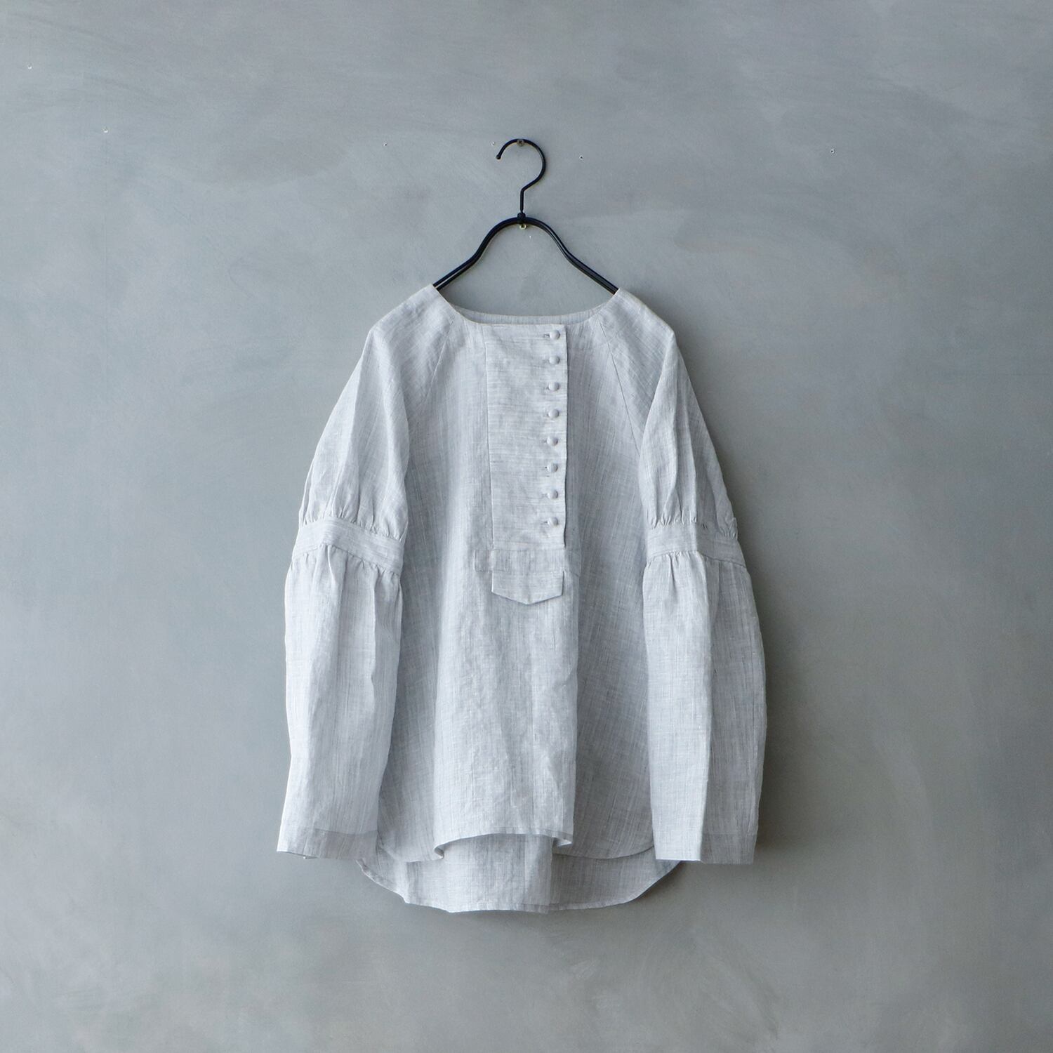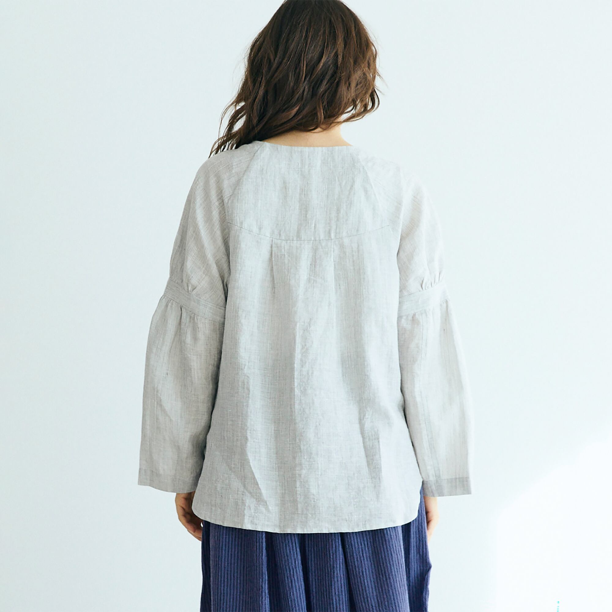 MAGALI シャンブレーリネン. ペザントプルオーバー グレイ